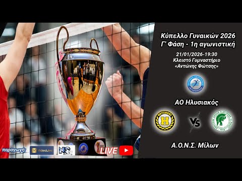 Κύπελλο Γυναικών - Γ' Φάση: ΑΟ ΗΛΥΣΙΑΚΟΣ - Α.Ο.Ν.Σ. Μίλων (livestreaming 19.30)
